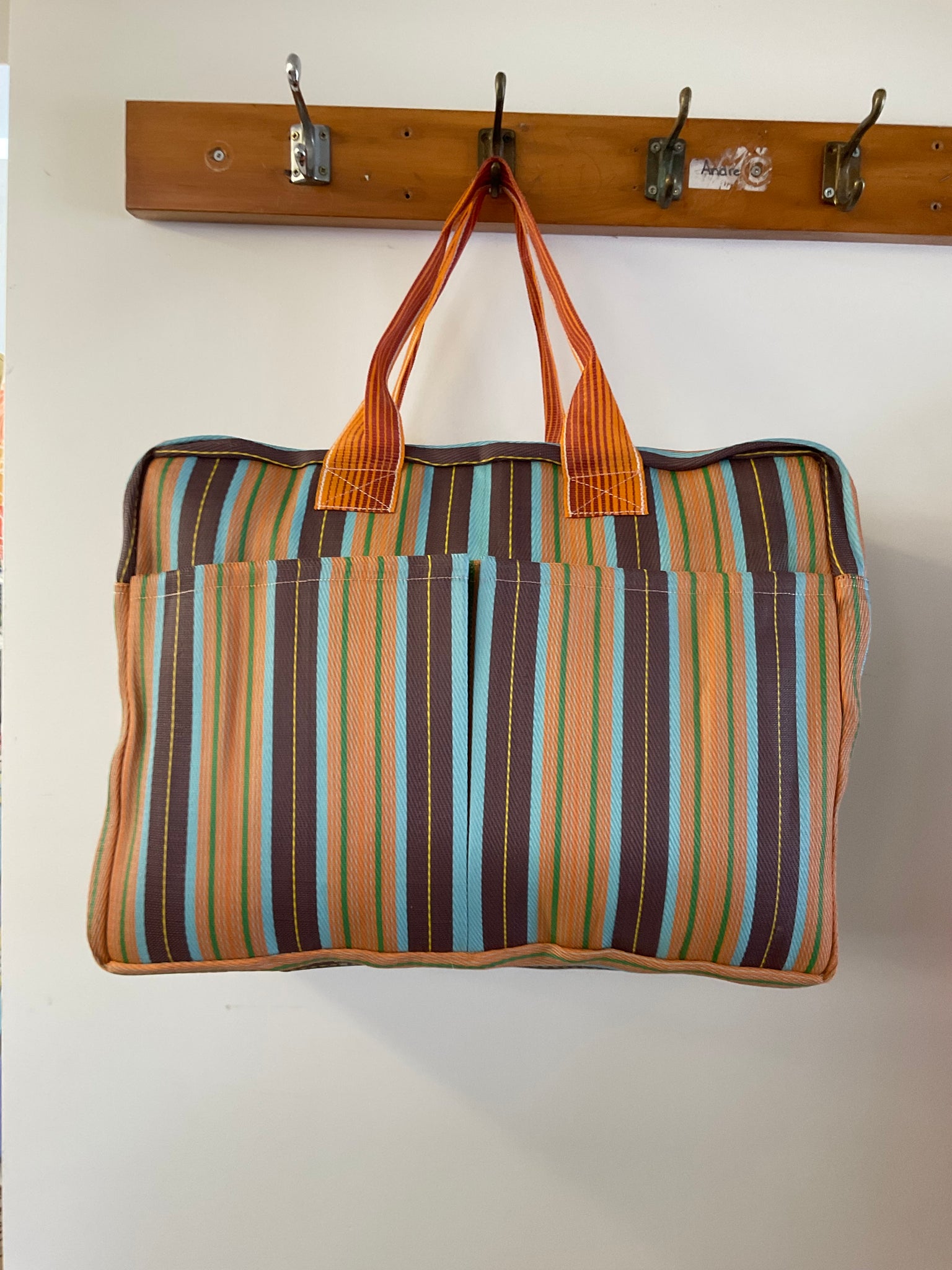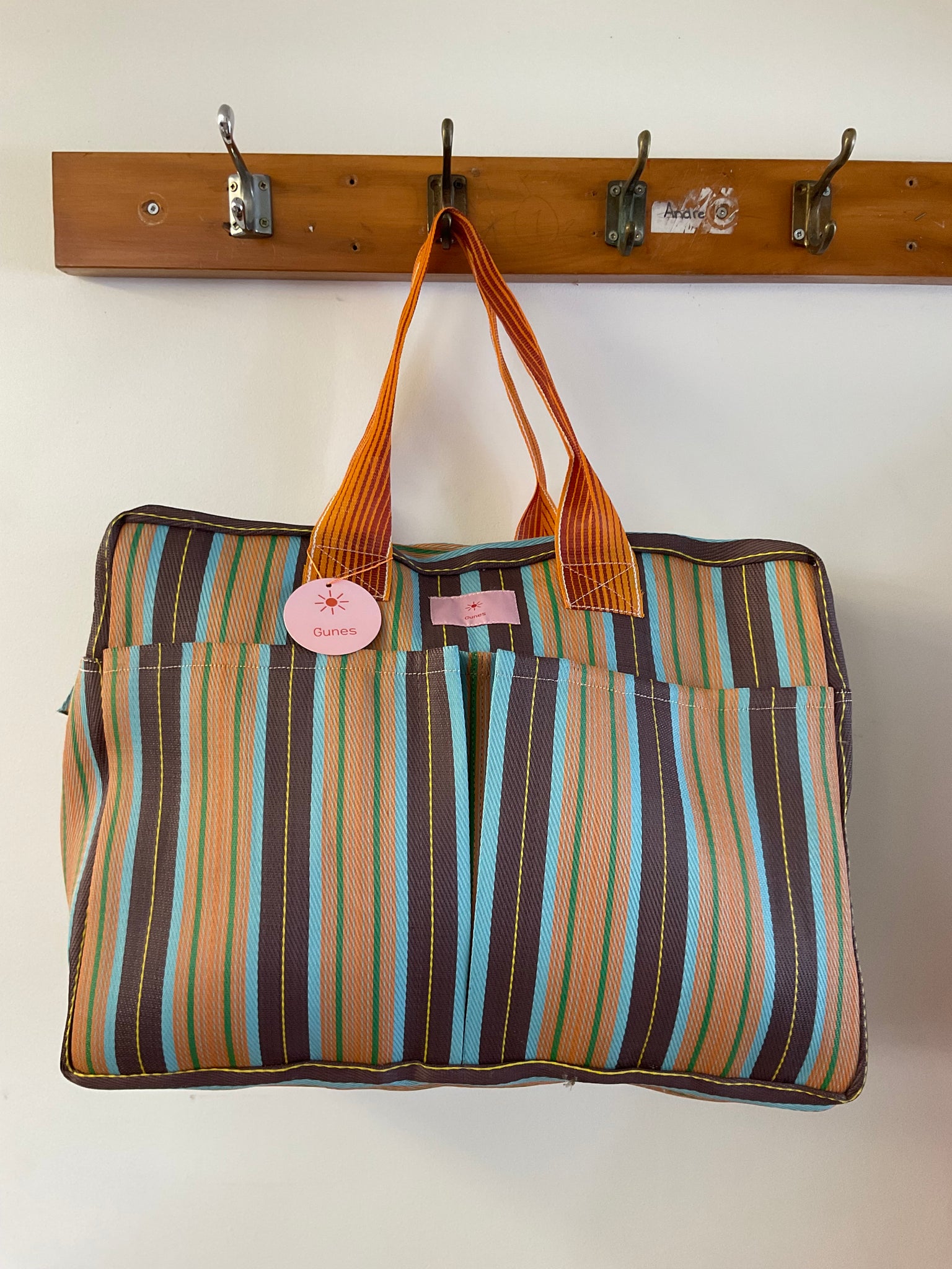 Perfect for a few nights away, or a beach visit with interior and exterior pockets, made from recycled materials